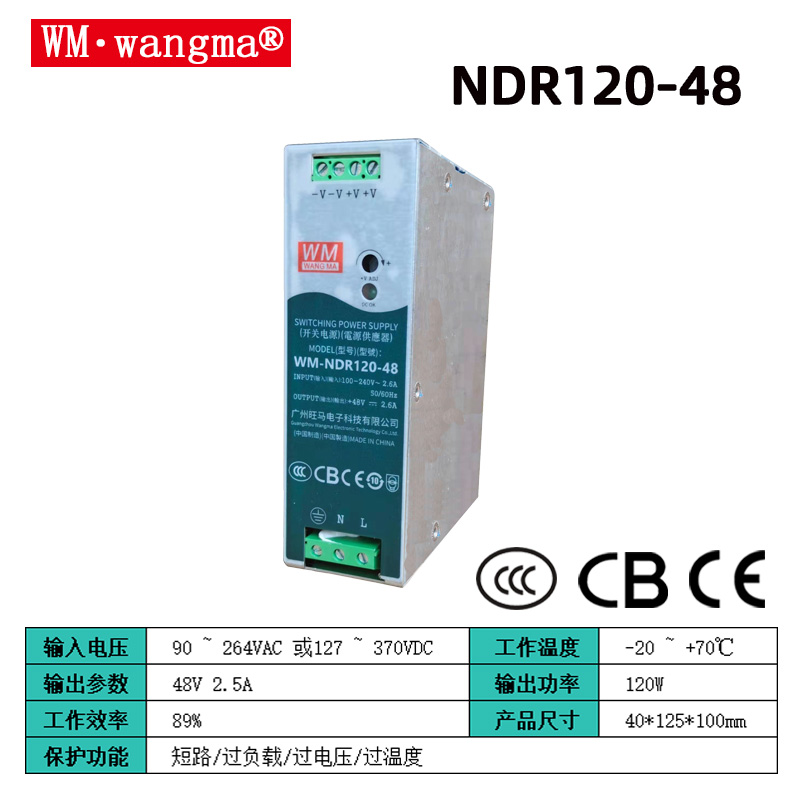 功率冗余:总负载 ×1.2~1.5 倍,避免满载运行;例如 100W 负载选 120W–150W 电源。输入电压:电网不稳选85–264VAC宽压型;直流输入选对应 DC 范围。输出质量:传感器 / 模拟量应用选低纹波(≤50mVp-p)、高精度型号。环境适配:高温 / 高湿 / 盐雾环境选宽温(-40℃~+70℃)、三防漆涂层型号。冗余需求:关键系统选支持N+1 并联 / 均流的型号,提升 MTBF。
